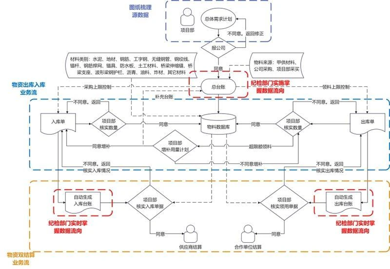 針對交通工程物資采購量大、種類繁雜、流轉(zhuǎn)環(huán)節(jié)多的特點,公司紀(jì)檢監(jiān)察融入“物資全鏈條管理模塊”,實現(xiàn)從“申請—發(fā)貨—入庫—領(lǐng)用—清點”的全流程閉環(huán)管理。水泥、地材等主要建材的現(xiàn)場需求申請、供應(yīng)商溯源、發(fā)貨地、入庫時間、入庫數(shù)量、領(lǐng)用時間、領(lǐng)用數(shù)量及領(lǐng)用人等信息均實現(xiàn)全過程留痕記錄。